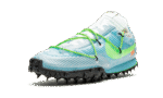 The Off-White x Nike Waffle Racer SP “Vivid Sky” is the women’s sizing of the remixed Waffle Racer design by Virgil Abloh and Nike. Released alongside two other dynamic colorways, Abloh’s take on the Waffle Racer SP adds a buoyant Vivid Sky nylon upper with a film overlay layered on top of the material. The look mirrors that of an athletes tape wrapped around the shoe. Tonal suede covers the toe cap and heel with Electric Green rope laces and Swoosh branding on the mid-panel contrasting the upper. A standard white nylon tongue features a green hang tab, a signature Abloh design included in his Nike collections. Completing the look of the women’s sizing of the Off-White x Nike Waffle Racer SP is a black rubber spiked outsole for a decidedly futuristic vibe. Release date: October 24th, 2019.