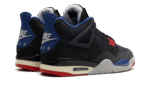 The Air Jordan 4 “Rare Air 2025” is a distinctive colorway of Michael Jordan’s fourth signature shoe. This Jordan 4 has a primarily black upper that is accented with pops of blue and red. The 2025 “Rare Air” AJ4 incorporates the signature design details of the Air Jordan 4, including the mesh panels and wings on the side. Nike Air branding appears on the heel. The Air Jordan 4 “Rare Air” also stands out because of the removable patches on the tongue.