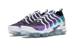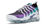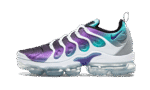 The Nike Air VaporMax Plus brings together two of Nike’s most progressive designs: the Air Max Plus and the VaporMax. In 2018, Nike Sportwear continued to push the envelope with the Air VaporMax Plus “Grape.” The upper combines a gradient of aqua tones, as White, Fierce Purple, Aurora Green, and Black are seamlessly blended together. The upper sits atop clear VaporMax cushioning. The result is a sneaker that combines 90s style with modern innovations.