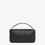 Iconic large Baguette bag made of black soft nappa leather with a three-dimensional texture FF motif. Decorated with an FF clasp.