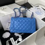 This classic small double flap bag is crafted in blue lambskin with ombre metal hardware, front flap with signature CC turnlock closure, half-moon back pocket, adjustable interwoven ombre chain and blue leather shoulder strap.