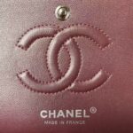 The interior is lined with burgundy leather and features a “love letter” zippered compartment under the first flap, an “outside” open pocket under the second flap, and an interior compartment with two open pockets separated by a “lipstick” compartment.