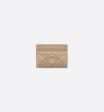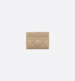 The Dior Caro Freesia card holder presents an elegant and practical style. Crafted in sand-colored supple calfskin with Cannage stitching, it is embellished with the CD signature on the front. Featuring five card slots, the refined accessory will fit anywhere and can be paired with other Dior Caro creations.