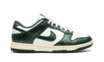 The Women’s Nike Dunk Low “Vintage Green” is a women’s-exclusive colorway of the classic sneaker with a collegiate flair. While not officially associated with the school, the “Vintage Green” is reminiscent of the Michigan State Spartans college basketball team, as it features the same green and white colors on its design as the Spartans’ team uniforms. Moreover, the “Vintage Green” honors the Dunk’s storied history as a mid-1980s college basketball team shoe with its aged, vintage look. The cream rubber midsole mimics the oxidation process rubber undergoes after years of use. Up top, the shoe features a white leather base. The Vintage Green leather overlays and Swoosh branding have a slight sheen and textured finish that mimics the look and feel of vintage leather. Cream white laces complete the throwback-inspired look.