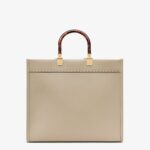 Medium Sunshine Shopper bag made of dove gray leather with hot-stamped FENDI ROMA lettering and stiff tortoiseshell-effect plexiglass handles.