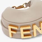 Mini hobo bag made of soft dove grey leather, embellished with vintage gold metal FENDI lettering.
