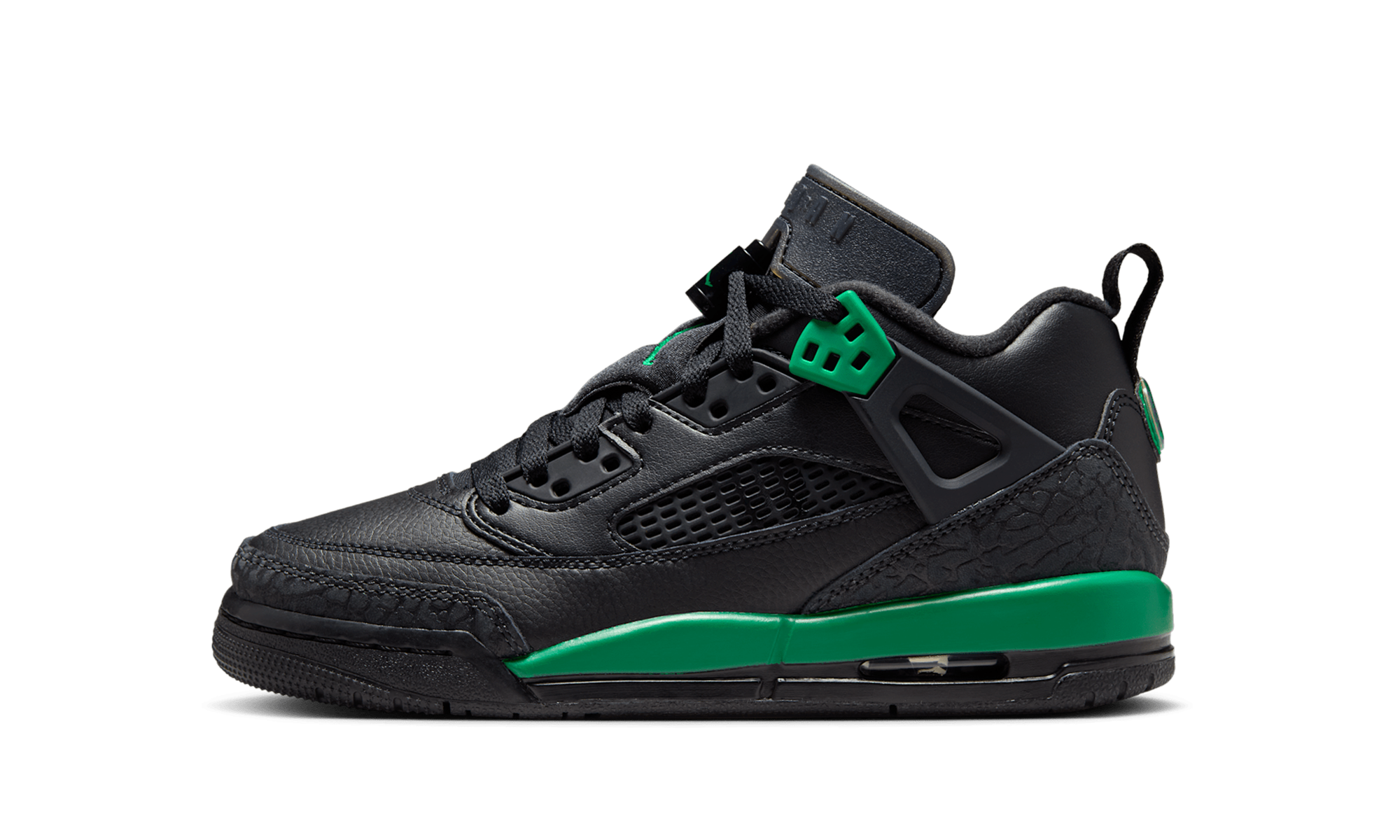 A fusion of iconic design for the younger sneaker enthusiast! The Jordan Spizike Low GS “Pine Green” for Grade Schoolers pays tribute to Spike Lee’s legacy by blending elements from five classic Jordan models into one sleek low-top. This version features a predominantly Black upper accented with vibrant Pine Green details and signature elephant print overlays. It delivers comfortable Air cushioning, durability from its leather and synthetic construction, and a bold look that celebrates basketball history.