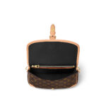 The Diane satchel in Monogram canvas revisits a classic model from the 90s, combining such vintage details as leather corners and an archival-inspired buckle with the modern functionality of smart pockets and a well-organized interior. The exclusive wide jacquard strap reverses from a bold Louis Vuitton signature to a subtle Monogram Flower motif.