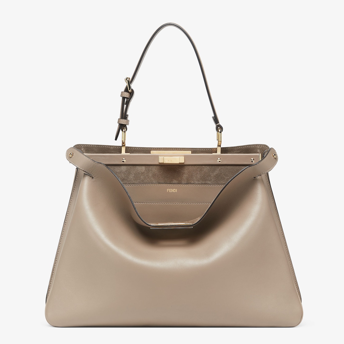 Iconic Large Peekaboo Soft bag, the epitome of Fendi craftsmanship and creativity. A timeless icon, the Peekaboo was created in 2009. Like the children’s game it takes its name from, peek-a-boo, the bag plays with the beauty showcased on the outside and that concealed on the inside.