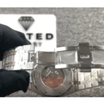 What truly sets this Audemars Piguet replica apart is its dedication to authenticity. Every detail from the arrangeable serial numbers and cards, right down to the font, punto, and finishing of the writings and markings is meticulously crafted to mirror the original. This includes the watch’s thickness and size, ensuring that it not only feels genuine but exudes the same level of sophistication and class.