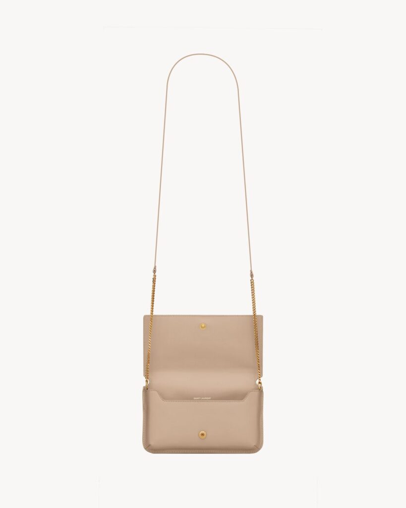 BAG decorated with THE CASSANDRE, FEATURING A LEATHER AND CHAIN CROSSBODY STRAP THAT CAN BE WORN DOUBLED FOR SHOULDER CARRY.