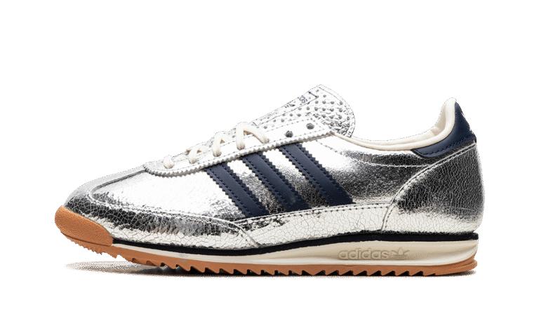 Step into retro-futuristic style with the Adidas SL 72 “Silver Metallic Collegiate Navy.” This design features a bold silver metallic